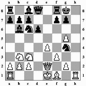 13...Kxd8 14.Sxf7+ Ke7 15.Sxh8 g5 16.Lg3 Se4? Beschleunigt die Aufgabe. 16...b5 war normal.
