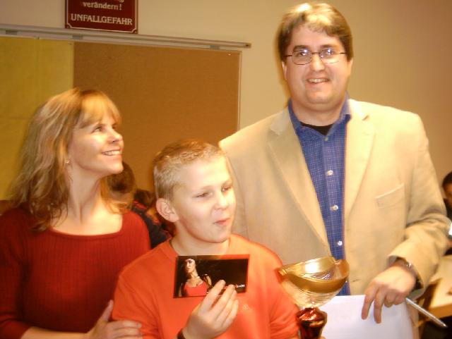 Frau Sonya Feinig mit ihrem Sohn Mario Feinig (Sieger Schülercup 2003) und Präsident Friedrich Knapp